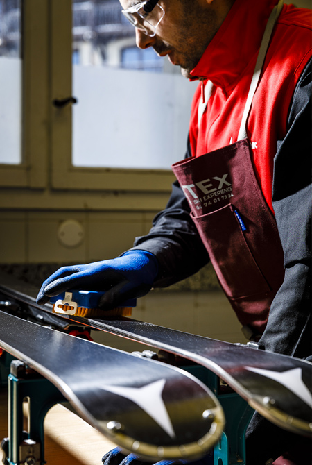 Løbende vedligeholdelse af skiudstyr på Oxalys.